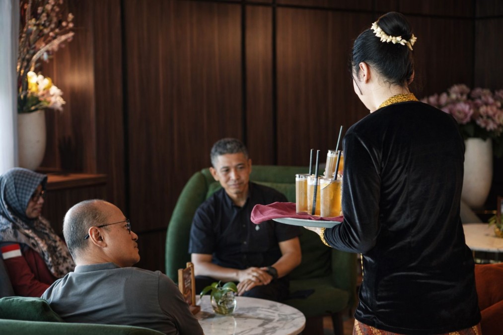 Pengalaman tamu turut dilengkapi dengan sajian welcome drink khas Kalimantan Timur berupa Nanjan Menteng yang dipadukan dengan amplang, sebagai bentuk pengenalan kuliner lokal kepada pengunjung.